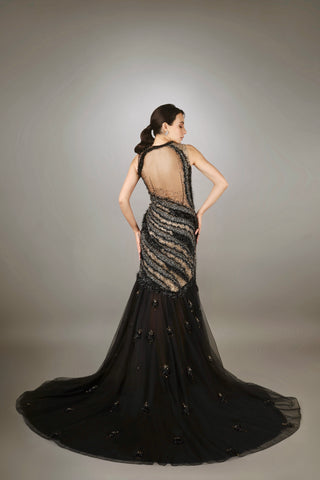 Make a statement in this luxurious Red Georgette Ball Gown. The intricate 3d appliques and ruffle textured details add depth and dimension, while the round neckline exudes elegance. Perfect for a formal event or any special occasion, this gown is a true work of art.